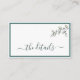This wedding details enclosure card features painted watercolor green leaves and modern calligraphy.