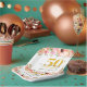This 50th wedding anniversary paper plate showcases a graceful watercolor floral border along the top and bottom. Soft shades of pink and peach create a delicate charm—perfect for golden milestone celebration.