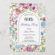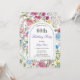 Colourful floral Arch Frame 60th Birthday with pretty wild country flowers in purple, lavender, green leaves and more, with a brushed script typography on an elegant background an use for any age of girls and women.