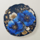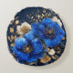 A vibrant digital illustration showcasing a bouquet of blue and white flowers with gold detailing, set against a dark contrasting background, evoking a sense of luxury and artistic sophistication.