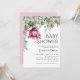 Featuring soft pink botanical flowers and lush greenery, this design blends classic elegance with a natural, romantic style—perfect for a sophisticated baby shower celebration.
