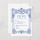 Elegant Floral Baroque Blue Column Wedding RSVP Card