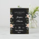 Celebrate your special day with this luxurious black and gold floral wedding invitation. Featuring intricate golden corner designs and delicate peach flowers, it creates a sophisticated and timeless look. The elegant script font highlights the names of the couple, while the bold text adds clarity to important details like the date and location. Perfect for couples seeking classic and modern elegance in their wedding stationery.