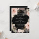 "Elegant Floral Black Rose Gold Eucalyptus Leaf Blush Pink Wedding Invitation Suite." Painterly modern style flowers were painted in pale blush pink and muted earth tones with hand drawn leaf foliage elements rendered in rose gold glitter. A dusty sage eucalyptus leaf foliage wreath was hand painted in watercolor by internationally licensed artist and designer, Audrey Jeanne Roberts. The reverse side has black background with the same wreath and the couple's monogram initials and wedding date. Copyright.