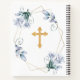 Elegant Baptism Guest Book. Design featuring gold frame with beautiful blue floral elements attached to it, gold cross and guest book in modern lettering. Perfect Baptism keep sake.