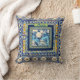 Elegant floral blue tile chinoiserie monogram note cushion