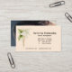 A elegant floral left side border is featured on this business card template design with all business details on the front. Personalise the template fields, remove any text or use the edit design tool to select a font style, size, and colour you like. The custom placeholder photo is on the back. Replace the placeholder photo with yours. Placeholder photo courtesy pixabay.com.