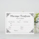 Commemorate your wedding with this elegant marriage certificate by JessicaAmber. Features beautiful script in the font Amazone, and space for you to manually add all the imporant details: the bride and groom's names, the date, the officiant, the location, and the signatures of the wedded couple, the celebrant, and two witnesses. A floral border gives a vintage feel.