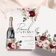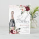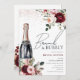 Invite your girls out for brunch and bubbles with this elegant bridal shower invitation. Design features a watercolor champagne bottle decorated with romantic burgundy red, blush pink and cream watercolor florals, greenery and faux rose gold glitter. The simple template is easy to customise with your own event details.