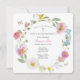 A beautiful First Communion invitation featuring a delicate watercolor floral wreath with pastel flowers and butterflies. The soft colors and elegant script create a romantic and timeless design, perfect for celebrating.