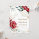 Elegant Christmas wedding invitation features beautiful red and white winter flowers with chic greenery and gold elements. Please view this holiday wedding collection for coordinating items.