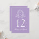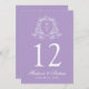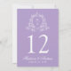 Add gentle charm to your wedding reception with these lavender floral crest table number cards, showcasing the couple’s initials within a delicate white crest. The centre highlights the table number, while the names and wedding date appear below in elegant white script—ideal for lavender weddings, romantic ceremonies, or spring weddings. This card measures 5"x7". Edit each table number individually and add them to your cart to ensure a smooth ordering process.