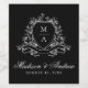 Elegant Floral Crest Monogram Black Wedding Wine Label