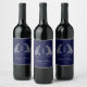 Elegant Floral Crest Navy Wedding Monogram Wine Label