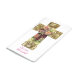A wonderful journal for any girl, young or old. It features a white background on the inside and outside. A floral cross with gold tips sits on the front cover with custom text inside. You customise the text inside and outside.