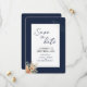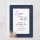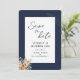 Elegant floral dark blue Save the Date flat card