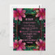 This stunning floral border design features vibrant, symmetrical pink and purple flowers with lush green foliage, creating an elegant and eye-catching frame. The deep black background provides a perfect contrast to the vibrant colours, making it ideal for wedding invitations, save-the-date cards, or other wedding-themed stationery. The luxurious floral artwork is perfect for a romantic and modern wedding aesthetic. Add a personal message or details in the centre to make it truly unique for your special day.