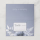 This is an elegant dusty blue floral wedding place card with light blue and navy blue watercolor flowers It is perfect for a floral winter wedding celebration.
