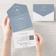Elegant Floral Dusty Blue Monogram QR Code Wedding All In One Invitation
