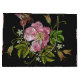 Elegant Floral Embroidery Pattern on Black Background - A beautiful embroidery pattern with vintage feel boasting a gorgeous wild rose in shades of pink, green foliage, and a butterfly hovering nearby.