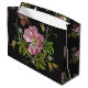 Elegant Floral Embroidery Pattern Black Background Large Gift Bag