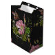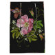 Elegant Floral Embroidery Pattern Black Background Medium Gift Bag