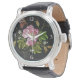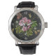 Elegant Floral Embroidery Pattern on Black Backgro Watch
