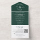 Elegant Floral Emerald Monogram QR Code Wedding All In One Invitation