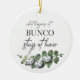 Celebrate the holiday season with this fun and elegant Bunco player design. Adorned with elegant floral eucalyptus greenery, three dice and modern typography.