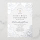 Elegant Floral First Communion Silver Foil Invitation Card.