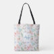 Elegant Floral Flower Leaf Blue Themed Monogram Tote Bag