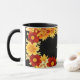 A decorative floral design featuring vibrant red and yellow flowers adorning a golden frame, set against a solid black background. Perfect for occasions, creative arts, and elegant graphic decorations.