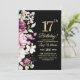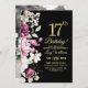 Elegant Floral Gold 17 Birthday Photo Invitation