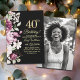 An elegant modern design featuring gold 40 number, watercolor floral and a special photo of the birthday person on the back of the invitation. Customize the details for a unique and chic Birthday Celebration.