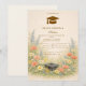 Soft, romantic and timeless, this pastel botanical graduation design features a delicate oval wreath of blush roses, buttercream blooms, and airy blue florals framed with an elegant gold arch. A subtle parchment background and classic typography create a refined, storybook aesthetic that feels both feminine and sophisticated. Finished with a rolled diploma tied in a blue ribbon at the base, this design is perfect for a spring or summer graduation party with a graceful, garden-inspired theme. Fully customizable for name, school, date, and event details.