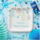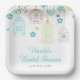 Elegant Floral Green and Blue Bridal Shower Paper Plate