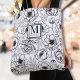 Elegant Floral Initial Monogram Tote Bag