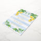 Real Gold foil Bridal Shower invitation features lemon clusters with flower blossoms, leaves and fruit in an elegant modern vertical 5" x 7", bracket shaped, typography text layout. Wide blue horizontal stripes fill the front and reverse side. Watercolor artwork by internationally licensed artist and designer, Audrey Jeanne Roberts. Romance captured! Fresh. Trending and yet timeless. Classic and Classy. © Audrey Jeanne Roberts, all rights reserved.