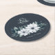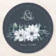 These elegant wedding coasters feature a beautiful floral design in dark teal, mint green and chiffon.
