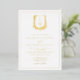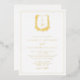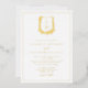 This elegant formal real gold foil wedding invitation features a gorgeous floral line art monogram crest at the top.