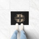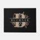 Elegant monogrammed doormat in classic, durable tan and rich black features your single initial monogram with your family name overlaid, decorated with a floral and botanical outline illustration.
