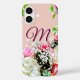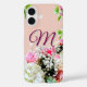 Design features a champagne-pink background to the image of a bouquet of beautiful pink and white flowers surrounding the monogram you supply in an elegant burgundy font.