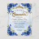 Modern Glam Floral Botanical Navy Blue Gold Tiara Crown Sparkle Glitter RSVP Birthday Quinceañera Invitation