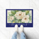 Elegant Floral Navy Blue Magnolia Flowers Name Doormat