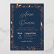This navy blue wedding invitation features an elegant rose gold foil border, and beautiful script lettering. Customise with your names and wedding details for guests.