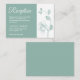 This elegant and minimalist wedding reception card features a beautiful and delicate mint green orchids line drawing design, over a classy white background on the right side. Easily edit the template fields to add your reception information in a modern and simple white font over a mint green background on the left side of the card.
