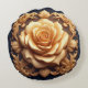 Beautiful flower centerpiece within an ornate circular golden frame, intricately designed with decorative floral elements, showcasing elegance, charm, and harmony in a symmetrically artistic composition.
