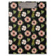 Elegant Floral Pattern on Black | Chic Botanical Clipboard