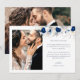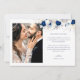 Share your heartfelt thanks with this Elegant Floral Photo Wedding Thank You Card, designed to showcase two of your favourite wedding moments. Adorned with a modern navy blue floral overlay and stylish calligraphy, it blends timeless elegance with a personal touch. Perfect for newlyweds who want to make a lasting impression, this card is a beautiful way to celebrate your love and gratitude.