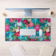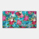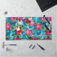 Elegant floral pink flowers blue pattern desk mat